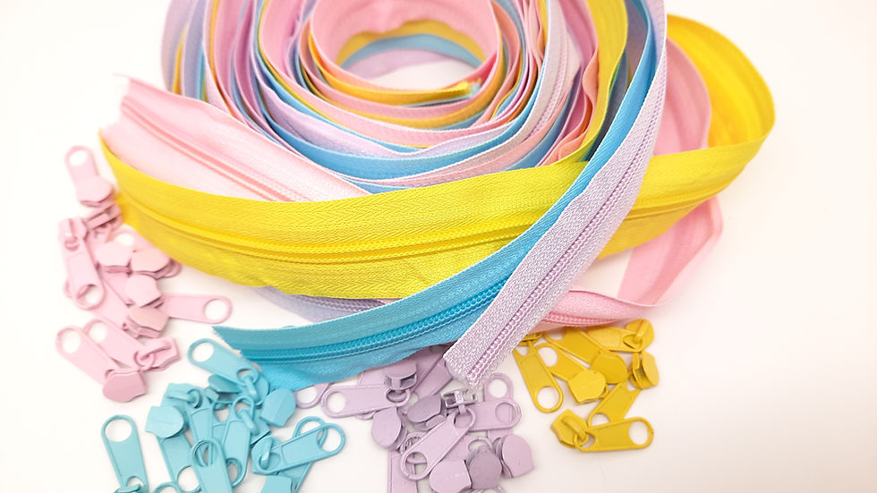 pakke 12m glidelås pastell (3 meter i 4 farger)